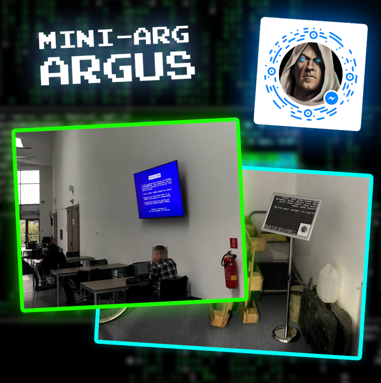 in the fall of 2017, Clues were hidden across the university grounds and players were encouraged to solve riddles for a mysterious hacker called Argus.